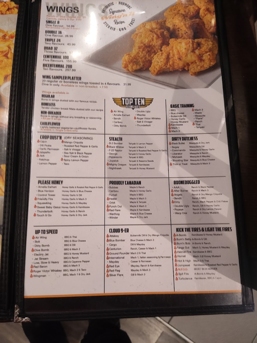 The menu boasts a tempting Wing Sampler Platter, allowing customers to indulge in both boneless and regular wings for a shareable experience. For those preferring lighter bites, the Authentic Poutine and Aviation Shrimp are must-tries, featuring rich beef gravy and crispy breaded shrimp paired with zesty Thai sauce.